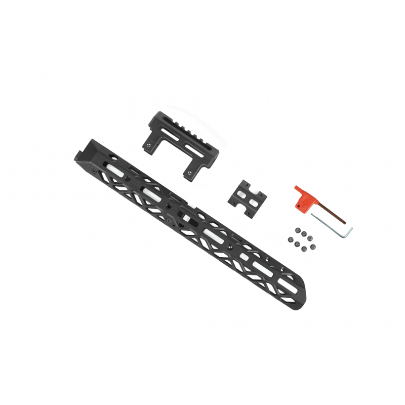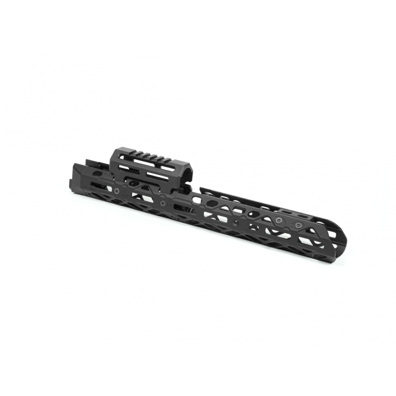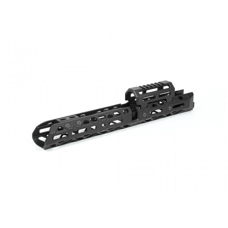 Krótka osłona rury gazowej zawiera zintegrowaną szynę Picatinny i wpięcia M-LOK.