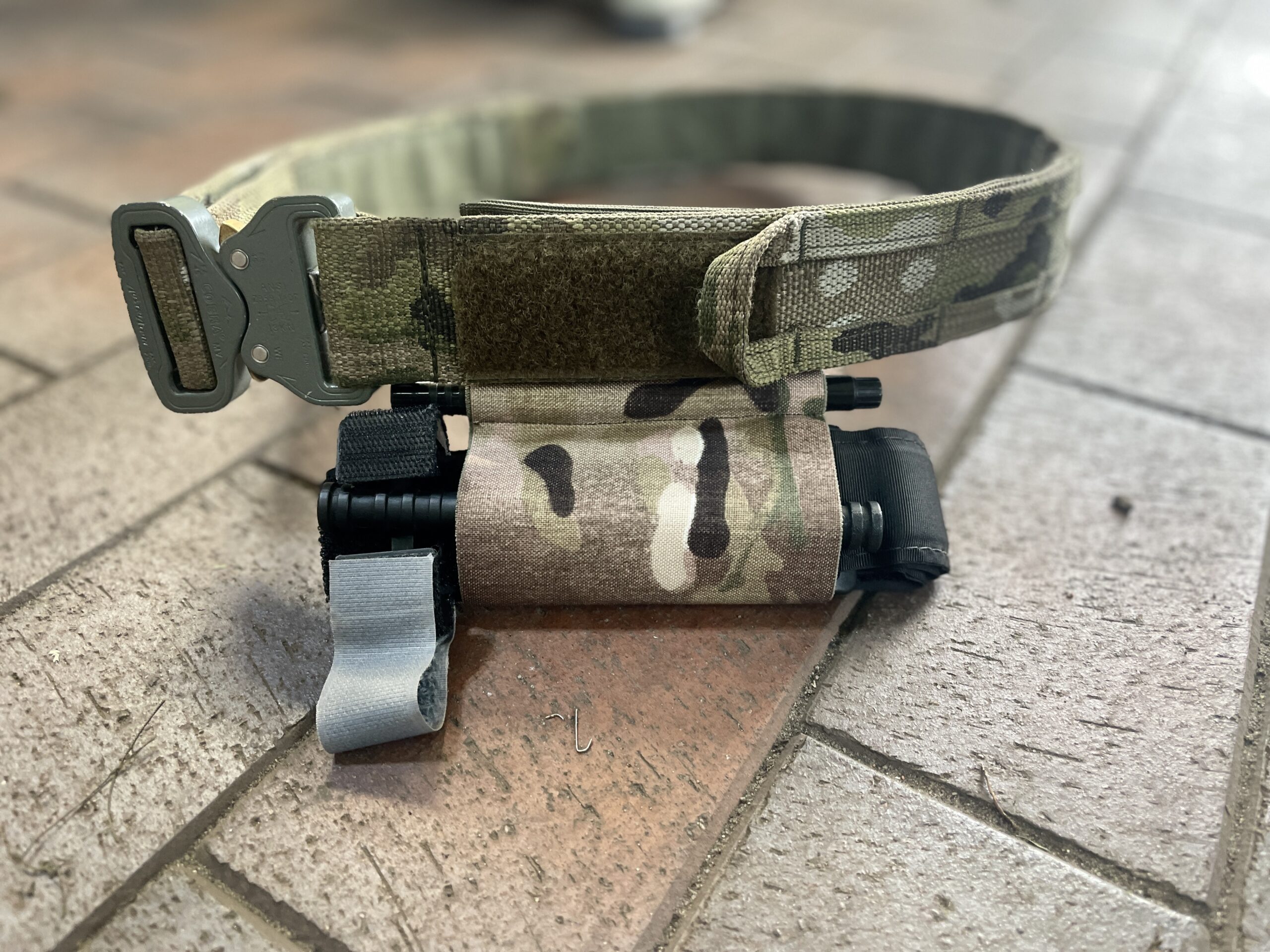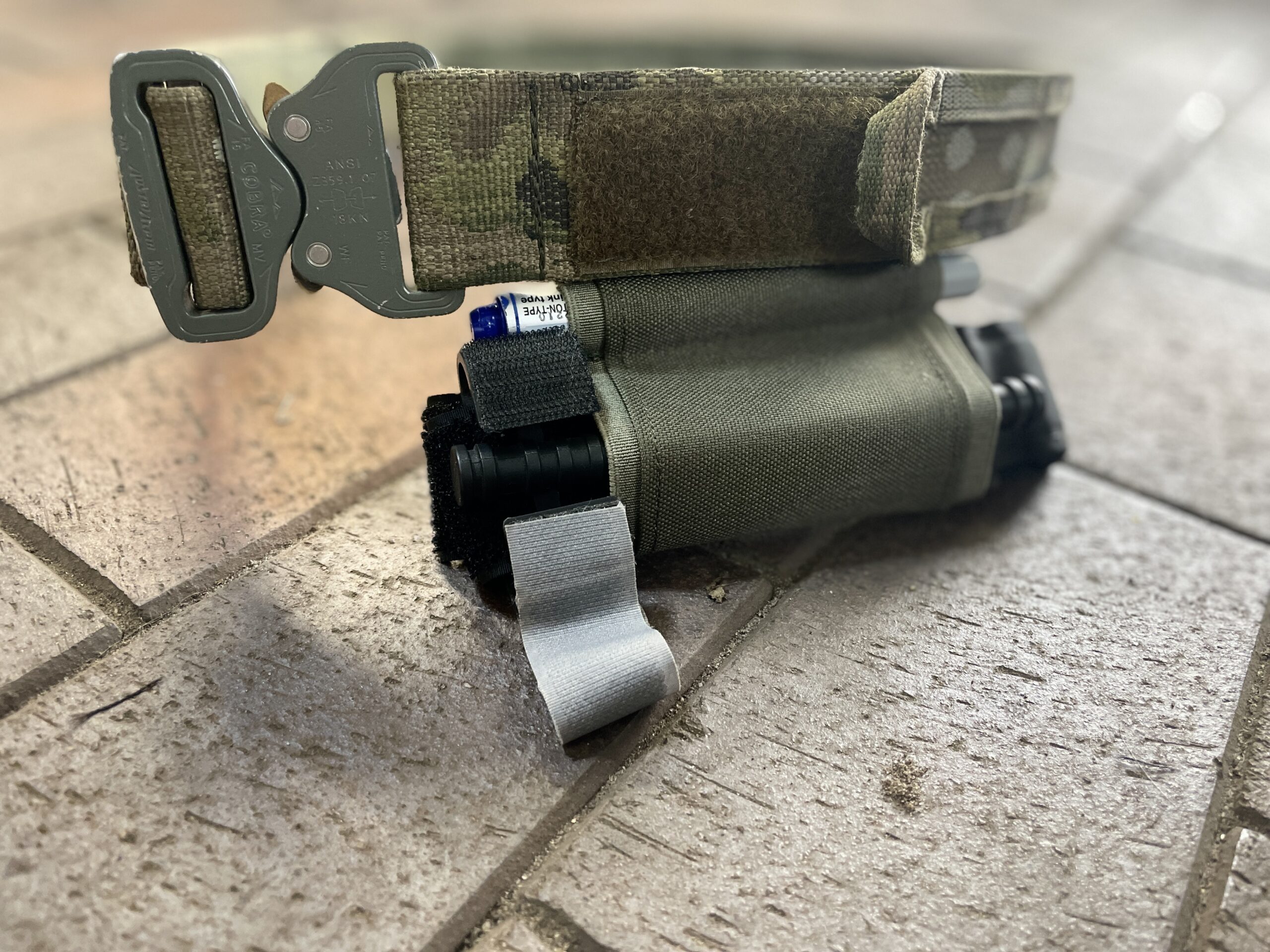 Etui na stazę taktyczną IWT wykonane ze sztywnej gumy oraz taśmy rzep haczyk i pętelki.