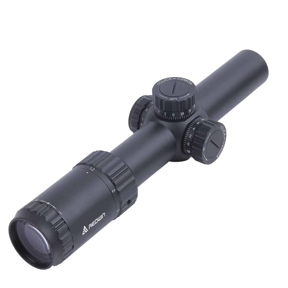 REDWIN Kuiper HD 1.2-6×24 FFP Kompaktowa luneta celownicza. 30-milimetrowy korpus ze stopu aluminium oczyszczonego azotem, uszczelniony pierścieniem O-ring i wytrzymała konstrukcja zapewniają odporność na wstrząsy, wodoodporność i odporność na mgłę. Odporna na zarysowania powierzchnia zapobiega zadrapaniom powierzchni i odbiciom, co sprzyja konserwacji lunety i lepszemu ukryciu strzelca. Doskonałe soczewki są w pełni pokryte wielowarstwowymi szerokopasmowymi powłokami antyrefleksyjnymi, które zapewniają maksymalną transmisję światła i wyjątkową przejrzystość. Podświetlana w świetle dziennym centralna kropka w siatce celowniczej zapewnia niezwykle szybkie namierzanie celu w bliskich odległościach. Ponadto niezawodne wieżyczki 1/2 MOA W/E zapewniają płynną i precyzyjną regulację, zachowując jednocześnie kompaktową i wydajną konstrukcję. Zaprojektowany z myślą o szybkim ustawianiu ostrości i szerokim polem widzenia, ułatwia użytkownikom ustawianie ostrości według własnych preferencji i zapewnia wysoką jakość obrazu od krawędzi do krawędzi. Łatwe ponowne ustawienie zera za pomocą dużej śruby na górze wieżyczki lunety.