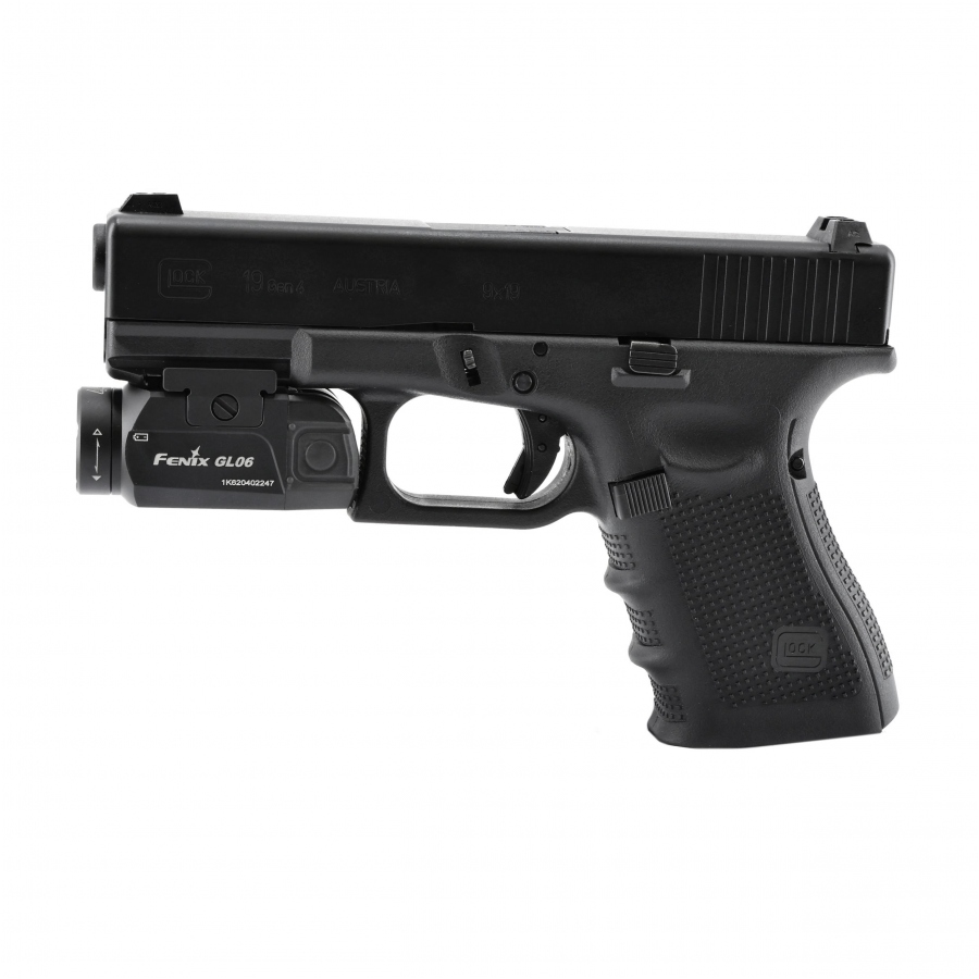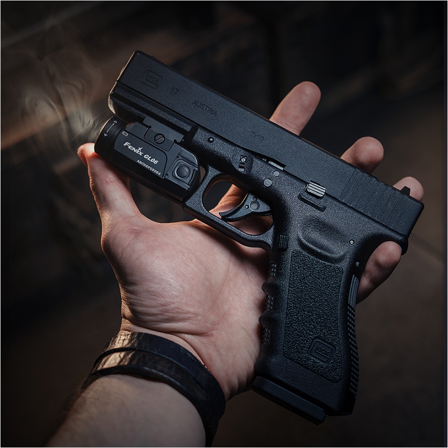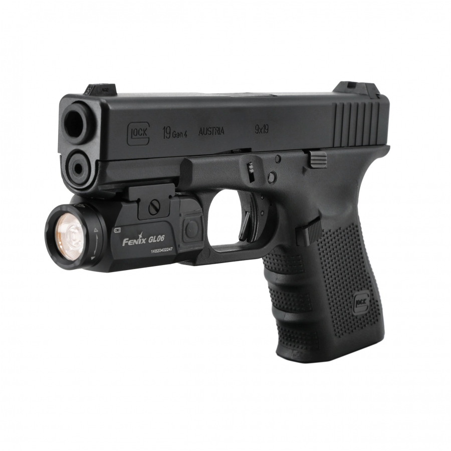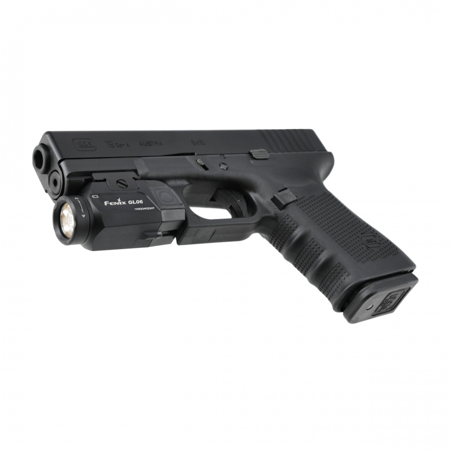 Dzięki dwóm wymiennym szynom latarka pasuje do większości pełnowymiarowych pistoletów z szyną Glock lub MIL-STD-1913. Lekka niskoprofilowa konstrukcja sprawia, że Fenix GL06 może być z powodzeniem stosowany podczas skrytego przenoszenia broni. Korpus Fenix GL06 wykonano z wytrzymałego aluminium A6061-T6 i wykończono techniką twardego anodowania typu HAIII. Ta trudnościeralna powłoka chroni aluminium przed utlenianiem i utwardza jego powierzchnie. Latarka spełnia wymogi klasy IP67, co oznacza, że jest odporna na wstrząsy, wilgoć (mocny deszcz, zachlapanie) oraz przenikanie drobnych ciał kurzu, dlatego może być używana do zastosowań taktycznych. W latarce zastosowano wydajną diodę Luminous CREE XPL HI-LED oraz cienką soczewkę optyczną ITR opatentowaną przez firmę Fenix. Zasięg odbitego światła to nawet 140 m, co umożliwia skuteczną identyfikację celu, skanowanie dużych przestrzeni oraz pomieszczeń. Emitowane światło o temperaturze barwowej 5000 K zapewnia naturalne odwzorowanie barw i detali oraz mniejsze zmęczenie wzroku przy dłuższym użytkowaniu.