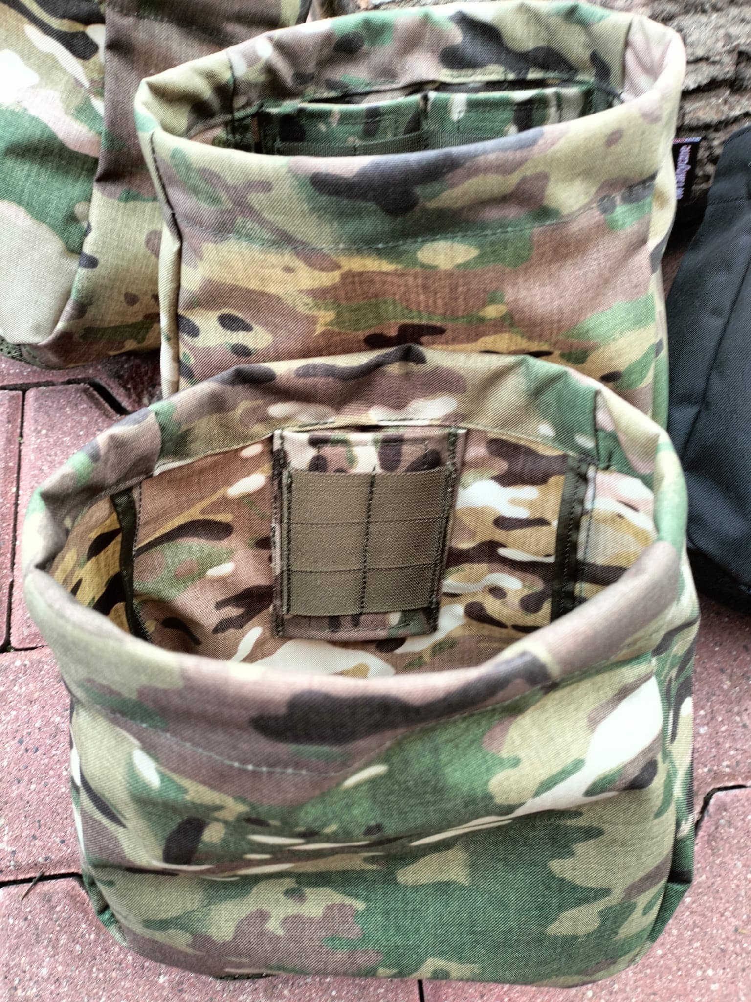 W wewnętrznej części worka zastosowano panel na mole dzięki czemu można zamontować dwie ładownice do magazynków o kal. 9mm lub jeden magazynek do kal. 5,56mm (w opcji dodatkowej jest możliwość zrobienia większego panelu wewnętrznego).