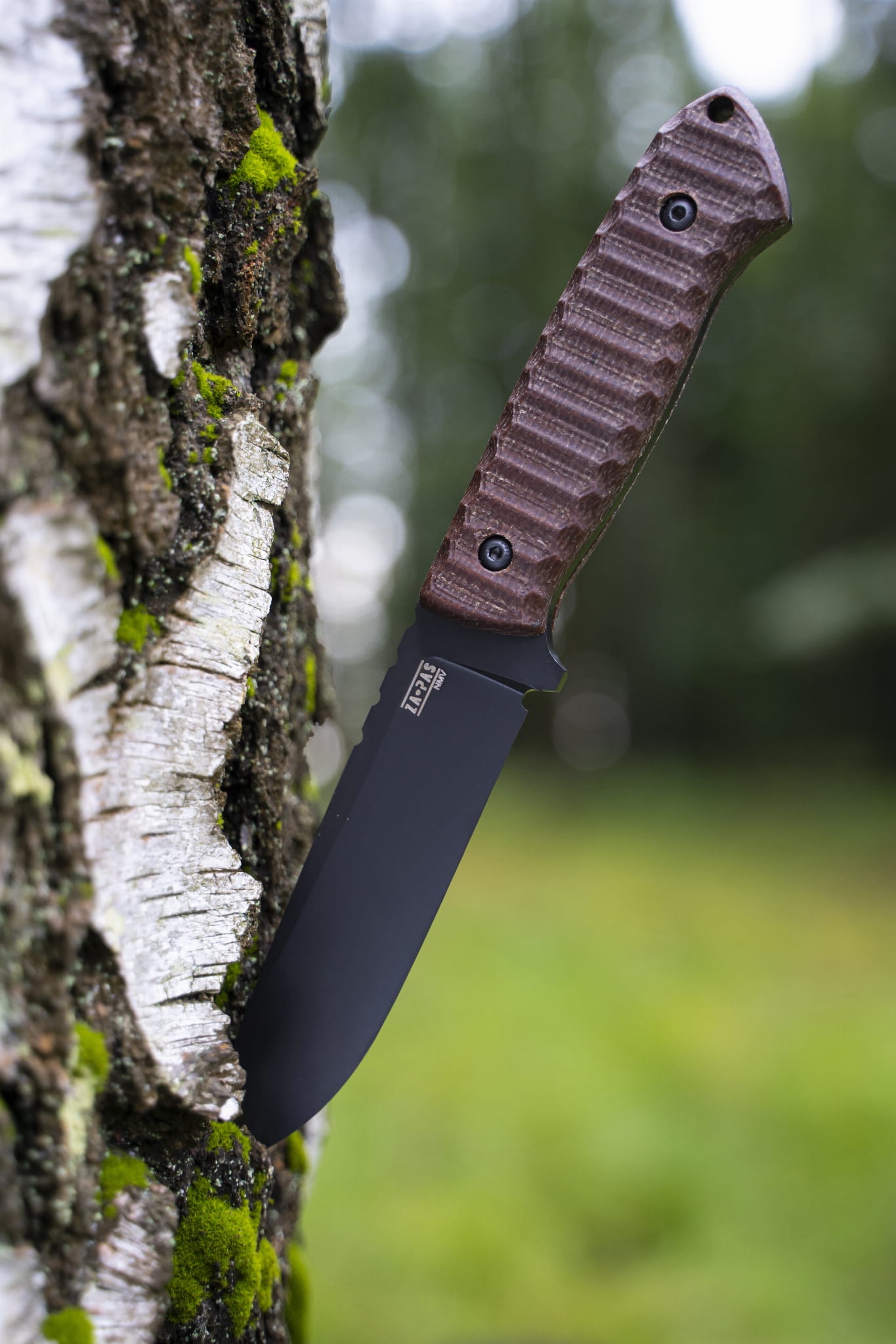 - Rękojeść: okładki z czarnego G10 lub mikarty w kolorze brązowym