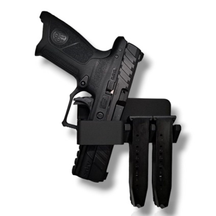 Zintegrowany uchwyt na pistolet i magazynki z górnym montażem, boczny lewy
